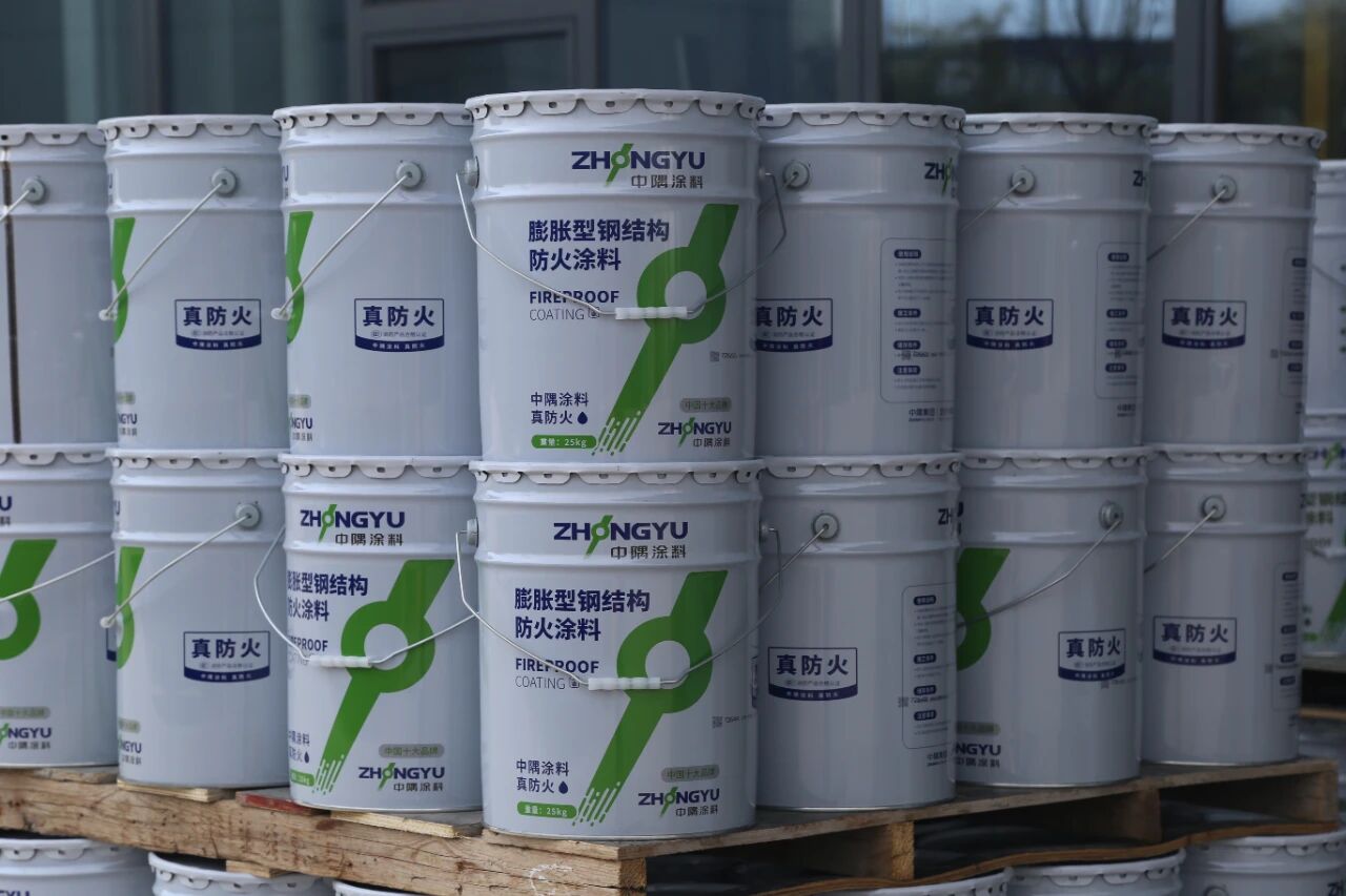 在园区火灾高风险区域,中隅采用了非膨胀型钢结构防火涂料,提供最高级别的防火保护。该涂料通过涂料自身的高效隔热性能,在火灾发生时延缓钢结构升温速度。