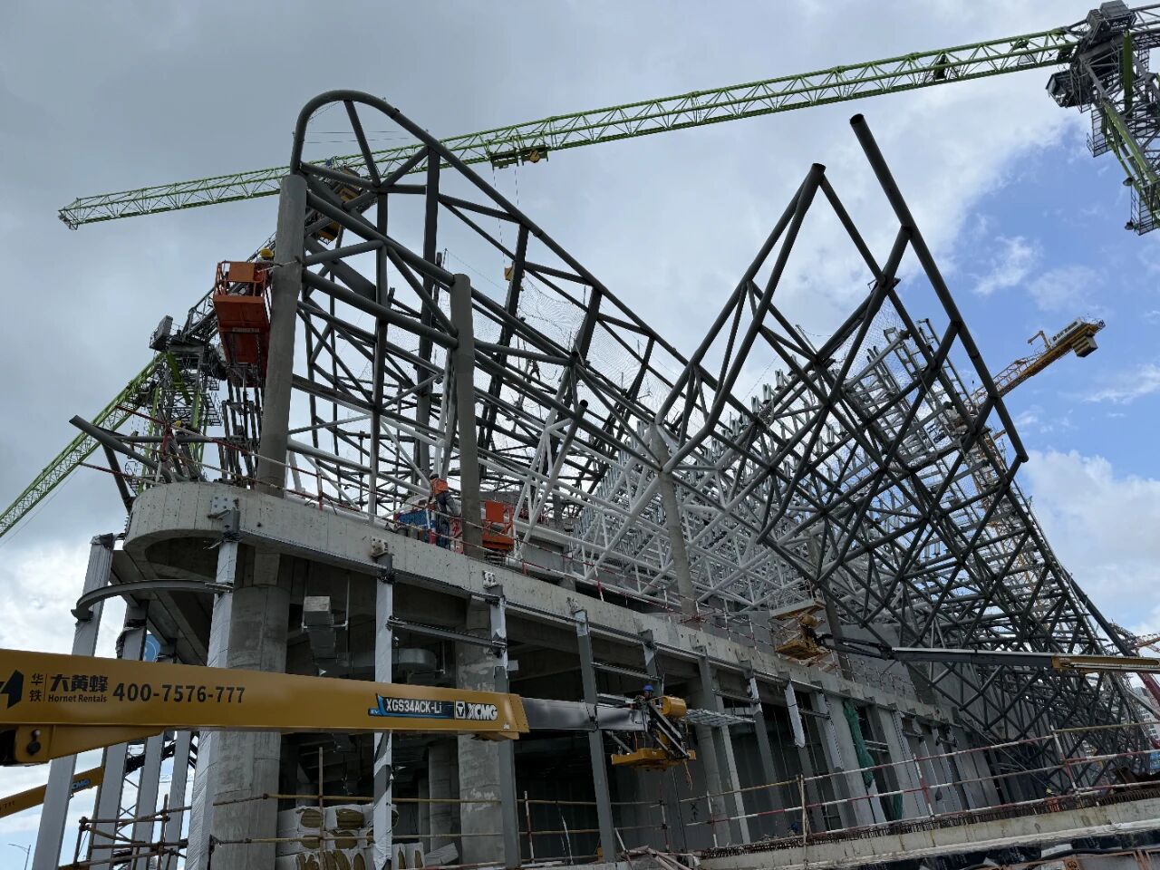 在碧海蓝天映衬下的海南,一座承载着文化交流与传承使命的建筑——海南国际文物艺术品交易中心正拔地而起。在项目建设过程中,团队面临了诸多挑战,施工质量的高标准、安全管理的高要求,给施工带来了不小的压力。面对挑战,一种看不见却至关重要的保护正在默默进行,中隅涂料以其卓越的防火解决方案,为这座艺术殿堂的"骨架"注入持久生命力。